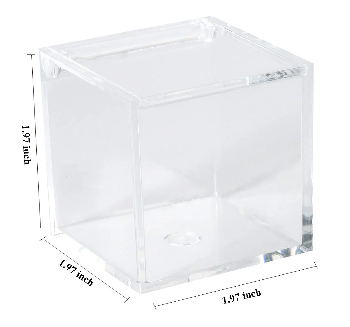 Mini clear acrylic cubes, perfect for candies, jewelry, or party favors. Compact and cleanly designed for creative gift packaging or small storage needs.