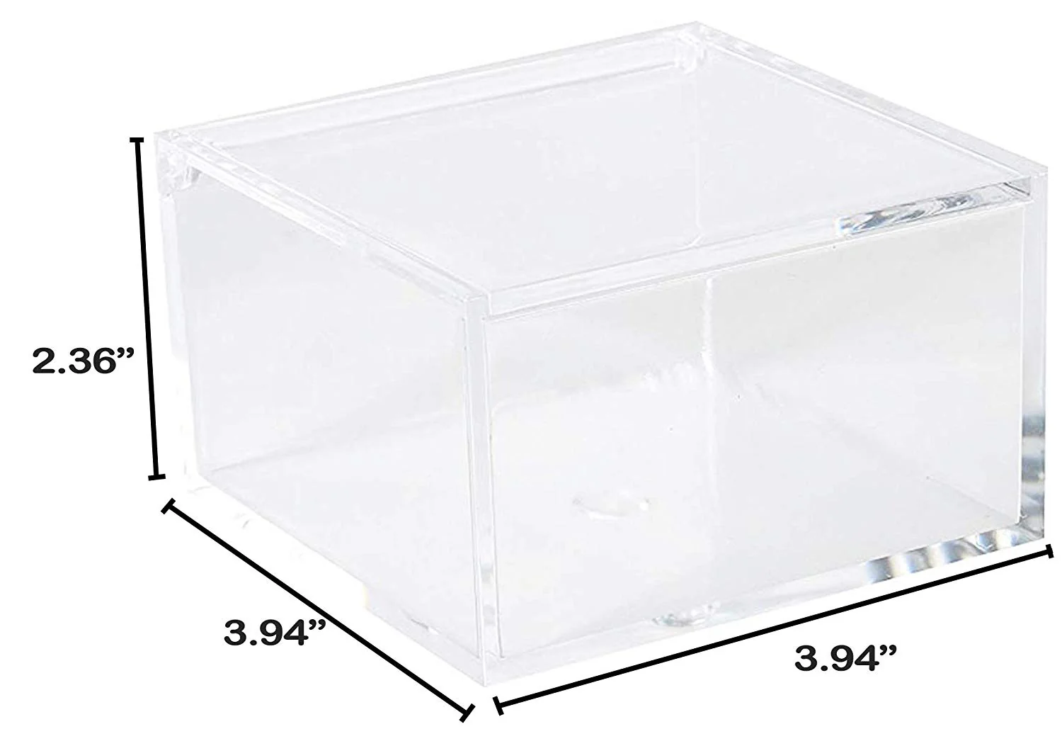 Clear acrylic boxes with a wide, shallow profile—perfect for displaying wrapped treats, stationery, or keepsakes. A sleek choice for organized and stylish storage.